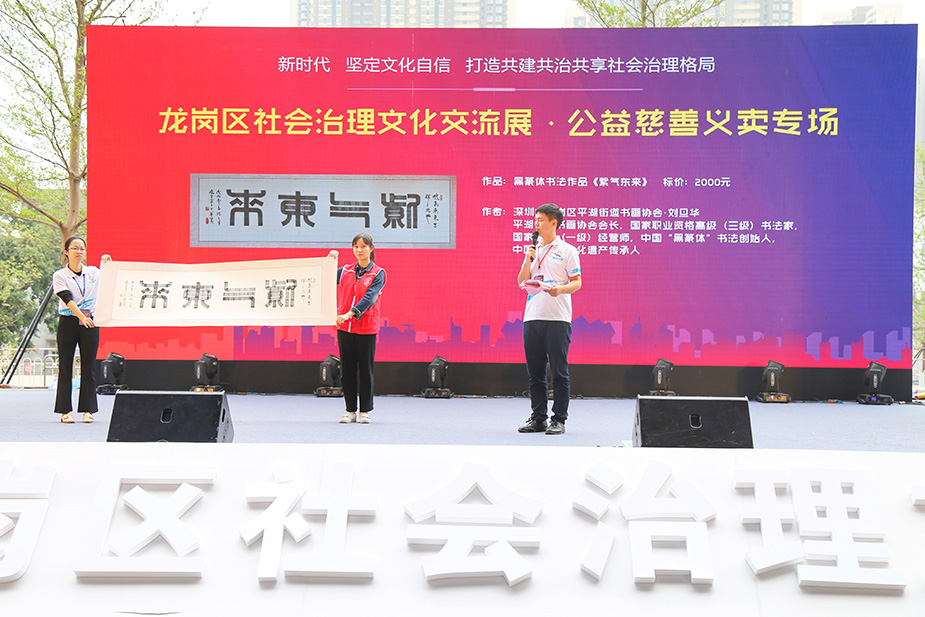 以文铸魂,塑造新时代龙岗精神。龙岗区新建成以“红立方”为代表的城市文化地标,本次交流展在红立方映衬下,饱含了龙岗特色、龙岗文化、龙岗精神。交流展上优秀传统文化激发了民族自豪感、客家文化讲述了龙岗之根、群众体育运动展示了健康社会心态、公益作品慈善义卖体现了龙岗温度、社会治理文艺节目演出了龙岗风采。